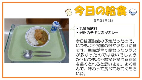 令和7年5月 献立表・給食だより ページ番号1019300 更新日 令和7年10月24日 印刷大きな文字で印刷 5月献立表 (PDF 314.3 KB) 5月給食だより (PDF 239.2 KB) PDFファイルをご覧いただくには、「Adobe(R) Reader(R)」が必要です。お持ちでない方はアドビシステムズ社のサイト(新しいウィンドウ)からダウンロード(無料)してください。