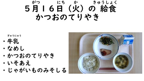 令和5年 5月の給食 ページ番号1014068 更新日 令和5年5月31日 印刷大きな文字で印刷 5月31日の給食 5月30日の給食 5月29日の給食 5月26日の給食 5月25日の給食 5月24日の給食 5月23日の給食 5月22日の給食 5月19日の給食 5月18日の給食 5月17日の給食 5月16日の給食 5月15日の給食 5月12日の給食 5月11日の給食 5月10日の給食 5月9日の給食 5月8日の給食 5月2日の給食 5月1日の給食