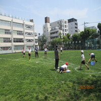 6年生は全校児童の計測補助を行うので、一足先に全ての項目の記録をとりました。ソフトボール投げでは遠くまで飛ぶよう、大きく腕を振り上げて投げていました。
