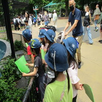 2年生のお兄さん、お姉さんと協力し、動物クイズに答えていました。