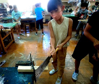 3年生/図工「ノコギリひいてザク ザク ザク」