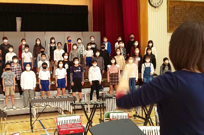歌唱「With you smile」/優しさに包まれるような歌詞と滑らかな曲です。アルトパートが主役になってうたう部分があり、何度も何度も練習を重ねています。