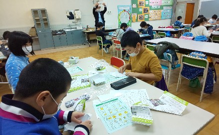 自分で選んだ本のあらすじを考え、本のタイトルを当てるクイズ本を作りました。根気のいる作業ですが、集中して取り組んでいました。