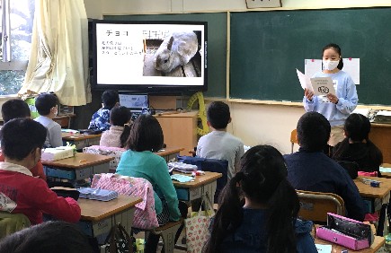 「ウサギについて興味をもった人は、学校図書館にウサギについての本がたくさんあるので、調べてみるとおもしろいですよ。」と読書もすすめていました。
