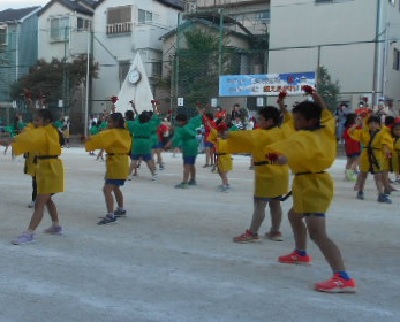 ぴっかぴかの一年生がキラキラのポンポンをもって、元気いっぱいダンスをしました。スキップやボックスステップなど、難しい振付にも挑戦しました。心を一つにして一生懸命踊りました。