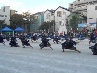 「うらじゃ」とは、岡山県のお祭りです。鳴子の音がしっかり出るように、鳴らし方を工夫しました。自分たちでオリジナルの振り付けも考えました。心を一つにして力いっぱい踊りました。