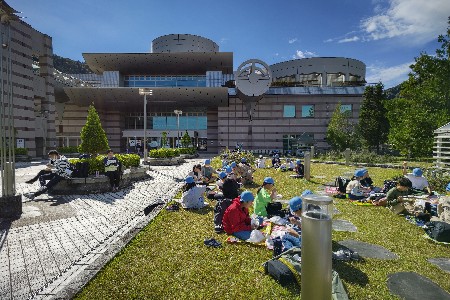 ▲ガイダンスを受けて、まずは昼食を中庭でいただきました。晴天で日向は暑いほどです。