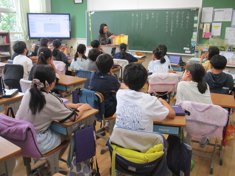 本校では 「自ら学ぶ力を育てる授業づくり」~ICTの日常化を目指して~ テーマに校内研究を進めています。各学年が研究授業に取り組み、ICTの活用法を探りながらテーマに迫っていきます。研究授業の様子を紹介します。今回は、5年生の2クラスが5時間目に研究授業を行いました。それ以外の学級は午前授業とし、全教員が研究授業を通して学びます。
