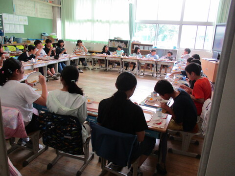 給食の時間です。1~6年生、皆美味しくいただきました。1年生は皆笑顔で「おいしい」と言いながら食べていました。1年生にとって、自分でむいたとうもろこしの味は格別だったことでしょう。他学年にも、1年生がむいたとうもろこしの感想を聞いてみました。6年生は「美味しいで~す。自分たちはコロナで皮むき体験できませんでした。」、5年生は「めっちゃおいしいです。自分たちもやりました。」と答えていました。6年生は残念でしたが、毎年行われている食育の学習です。家での食べ方を聞いてみると、なにもつけずに食べる子どもが多かったですが、中には塩を振る、醤油をつける、バターをつけるという子どももいました。
