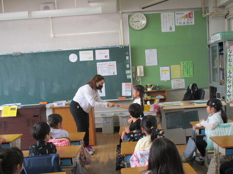 昨日は1組、今日は2・3組が英語の授業を行いました。英語の授業の時にはNEA(NATIVE ENGRISH SPEAKING ASSISTANT)のアナ先生が指導に入ります。もちろん、なるべく NO JAPANESE ですが、日本語で答えても問題ありません。楽しく英語に親しめることが大切です。