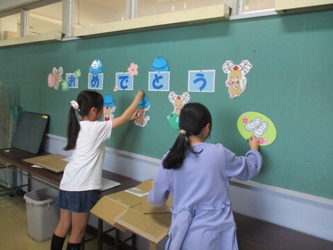 一日早く6年生が登校して、子供たちが使う机やいすを各教室に運び、入学式の準備をしてくれました。
