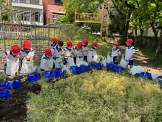 現在の位置: 第四峡田小学校 > 学年のページ > 2年生 > 令和5年度 > 野菜の苗植え