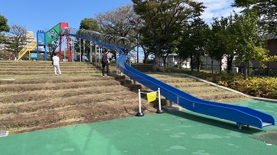はじめは大きなすべり台に挑戦です。意外にごろごろ、ゆっくりです。