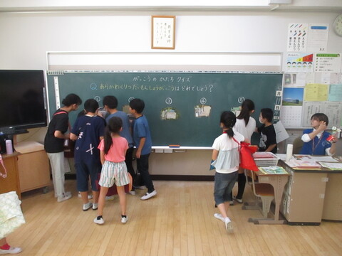 令和5年5月 大門小のようす ページ番号1014377 更新日 令和5年5月26日 印刷大きな文字で印刷 きょうだい班オリエンテーリングラリー 5月17日(水曜日)にきょうだい班オリエンテーリングラリーが行われました。6年生がリーダーになり、グループで協力してクイズに答えていました。 最初のクイズは、文字を並べ替えて文にするものです。全グループが正解して、オリエンテーリングがスタートです。 先生たちが飼っているペットもクイズに登場しました。みんな真剣に考えています。4年生 水道キャラバン 5月24日(水曜日)、4年生を対象に水道キャラバンを実施していただきました。 実験やクイズなどもあり、子供たちは目を輝かせて学習していました。 玉川上水をつくるのに、大きな役割を果たした玉川兄弟も登場しました。6年生 租税教室 5月26日(金曜日)租税教室を実施していただきました。 税理士の先生方に、テーマごとに分かりやすく説明していただきました。子供たちは税金の種類の多さに驚いていました。3年生 やごとり 5月26日(金曜日)、3年生がプールでやごとりを行いました。 ビーチサンダルをはき、虫取り網を片手に楽しそうにやごを見付けていました。 理科の昆虫の学習につなげていきます。