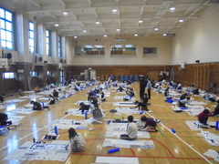 1月11日(土曜日)からの書初め展に向けて、1,2年生は硬筆、3,4,5,6年生は毛筆で書初めを行っています。