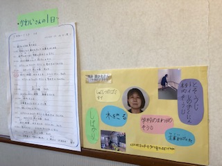 1年生は生活科で「にこにこいっぱい大さくせん~しゅじさんのにこにこをみつけよう~」という学習をしています。まず、主事さんがしている仕事を思い出したり、主事さんにインタビューをし1日の仕事内容を教えてもらったりしました。次に、調べた仕事をまとめたり、クイズを作ったりし、26日5時間目には1年3組が、調べたことをグループごとに発表していました。堂々と大きい声で発表したり、話を聞いて質問をしたりしながら、どの子も意欲的に取り組んでいました。