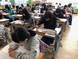 18日 6年生 全国学力学習状況調査 ページ番号1013875 更新日 令和5年4月18日 印刷大きな文字で印刷 18日 6年生の全国学力学習状況調査の様子を紹介します。 14日に区学力向上のための調査で5教科のテストを頑張った6年生ですが、今日は全国学力学習状況調査で国語と算数のテストに取り組んでいます。全国の6年生が実施しているもので、問題等も公表されますが、毎年、かなりの難問が出ています。子どもたちは苦戦しながらも集中して一生懸命取り組んでいました。