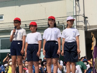 絶好のお天気のなか、運動会を実施しました。3年ぶりに来賓・地域の方をお呼びして、また保護者の人数制限もなく開催した運動会。たくさんの方にご来校いただきました。熱いなか、応援ありがとうございました。子どもたちは、たくさんのお客様の前で、練習の時より、さらにバージョンアップした素敵な姿を見ていただくことができ大満足でした。入場行進~応援合戦までの様子です。