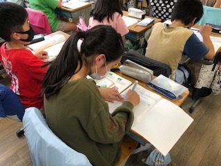 9日5時間目、4年生が算数の学習で、分度器を使って三角形をかいていました。どの子も集中して一生懸命かいていて、苦労しながらも正しくかけていました。かなり前ですが、私も、小学校4年生の時に分度器の学習をしました。一番初めの学習の時に、先生から「45度をかいてもってきましょう。」と言われましたが、不器用だった私は正しくかくことができませんでした。何度も挑戦しましたが、焦れば焦るほど正しくかけず、泣きながらかいたことを今でも覚えています。落ち着いて、正しくかいている子どもたちを見て、感心させられました。