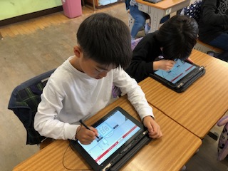 20日 2年生 尾久西タイム ページ番号1016688 更新日 令和6年2月20日 印刷大きな文字で印刷 2年生の尾久西タイムの様子を紹介します。 尾久西タイムの時間、2年生がタブレットPCを活用して、漢字や九九の学習、タイピングの練習に取り組んでいました。漢字の練習は自分のペースで進めていくことができ、自宅でも続きを行うことができます。正しい筆順で丁寧に書かないとなかなか花丸がもらえず、次に進めないので、はねやはらいまで気を付けて練習しています。九九の学習もかなり進み、九九チャレンジ全員合格まであと少しです。全員合格めざして頑張ってほしいです。