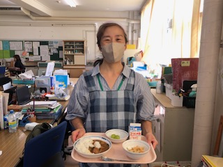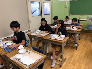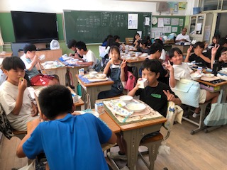 2日 5・6年生 給食 ページ番号1018128 更新日 令和6年9月2日 印刷大きな文字で印刷 5・6年生の給食の様子を紹介します。 2学期初日から給食があるのは、私たち教職員にとっても、子どもたちにとっても、とても嬉しいことでした。いつも元気いっぱい食べている5・6年生、今日も笑顔で大好きなカレーをおもいっきり食べていました。栄養士さん・給食室のみなさん、2学期もよろしくお願いします。
