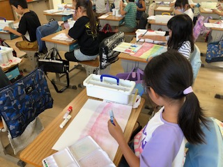 24日 2年生 図工 ページ番号1018278 更新日 令和6年9月24日 印刷大きな文字で印刷 2年生の図工の学習の様子を紹介します。 5・6時間目、2年3組が図工で「絵のぐで、なにかをうかび上がらせよう」という学習に取り組んでいました。白のクレパスで絵をかき、水をたっぷり含んだ絵の具で塗り、絵を浮かび上がらせる活動でした。子どもたちは夢中で絵を描いていました。絵の具で塗ると浮きあがってきて「オー」という声があがっていました。