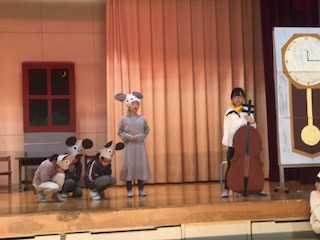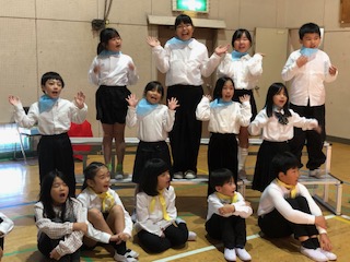7日 3年生 学芸会に向けて ページ番号1018557 更新日 令和6年11月7日 印刷大きな文字で印刷 3年生の学芸会に向けた練習の様子を紹介します。 5時間目、3年生が学芸会に向けて通し練習を実施していました。衣装もつけて本番通りの流れで練習していました。お客様に伝わるように、一人一人がしっかりセリフを言い、しっかり演技をしていました。歌もとても上手でした。本番が楽しみです。