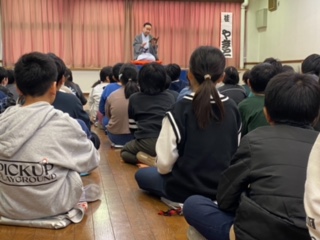 13日 5年生 落語教室 ページ番号1018778 更新日 令和6年12月16日 印刷大きな文字で印刷 5年生の落語教室の様子を紹介します。 3・4時間目、ランチルームで落語教を実施しました。本校卒業生、いつも尾久西を応援してくださっている桂やまと師匠に来ていただきました。落語を二席していただき、話術や話を聞いてもらうコツ等も教えていただきました。昨年度「ようこそ先輩」で来ていただき、5年生にとっては2回目の落語でしたが、子どもたちは夢中で聞き、質問もたくさんしていました。やまと師匠、今年度もありがとうございました。