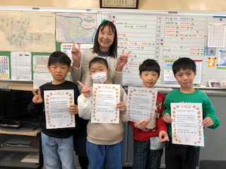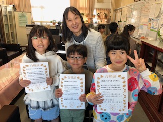 17日 2年生 算数 ページ番号1018799 更新日 令和6年12月17日 印刷大きな文字で印刷 2年生の算数の学習の様子を紹介します。 2年生は、算数で「九九」の学習に取り組んでいます。今朝、九九の挑戦状を配布したところ、早速2年2組の子どもたちがチャレンジに来ました。九九の中でも、難しいと言われている4の段や7の段を中心に、間違えやすい問題等も含め、全部で30問がバラバラに出ます。どんどん出る問題に3秒以内に答えなければなりません。どの子も自信たっぷりで挑戦しに来て、たくさんの子が合格証をもらいました。2年生、全員合格目指して頑張ってほしいです。