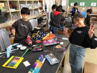 18日 3年生 図工 ページ番号1018804 更新日 令和6年12月18日 印刷大きな文字で印刷 3年生の図工の学習の様子を紹介します。 1・2時間目、3年1組が図工で「きって くみたてて」という学習に取り組んでいました。1本の木を切って、組み立てて色を付けて、思い思いの作品に仕上げていました。素敵な作品ができて子どもたちもとても嬉しそうでした。