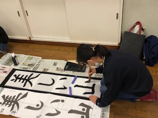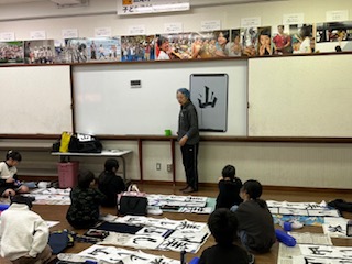 18日 4年生 書き初め ページ番号1018806 更新日 令和6年12月18日 印刷大きな文字で印刷 4年生の書き初めの練習の様子を紹介します。 3・4時間目、4年2組・3組がランチルームで書き初めに向けて練習に取り組んでいました。4年生は「美しい山」と書きます。毎年、3年生~6年生の書き初めの指導に来ていただいている関口寿美先生に来ていただき、だるま筆できれいに書くコツやバランス良く書くコツ等を教えていただきました。子どもたちはしっかり話を聞いて、集中して書いていました。冬休みの練習もがんばってほしいです。