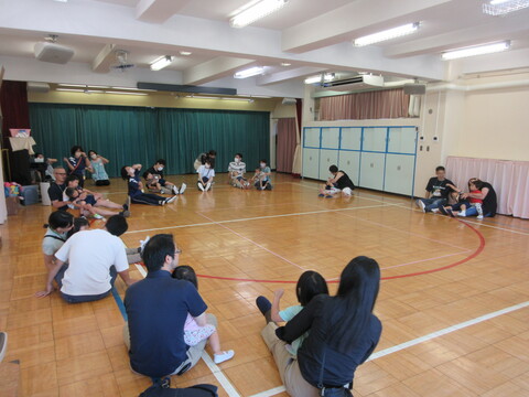 プールに入る約束を真剣に聞き、プールの歌を元気よく歌いました。