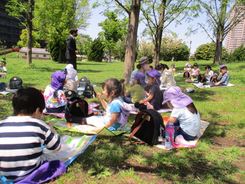 お弁当給食(5歳児) ページ番号1009269 更新日 令和4年4月22日 印刷大きな文字で印刷 今日は今年度初めてのお弁当給食。 いつも食べでいる給食をお弁当箱に詰めてもらいました。 5歳児クラスみんなで汐入公園で「いただきます!」心地よい気候の中、外で食べる給食の味は格別です。 「おいしい〜!」と大喜びの子どもたちでした。