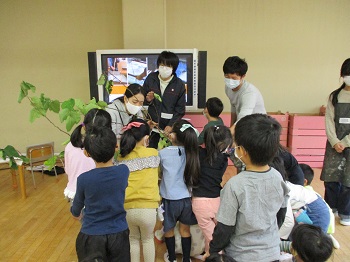 令和2年12月23日 11月<年長組>アートの日 ページ番号1006012 更新日 令和4年3月14日 印刷大きな文字で印刷 年長組は、東京芸術大学美術学部の先生、学生の方と一緒に活動をしました。 今回のテーマは「和紙をつくろう」でした。 紙の原料となるコウゾやミツマタの木に触れました。 「枝が3つに分かれているからミツマタっていうんだよ」コウゾの木の皮をむいて、煮ます。紙漉きの枠を使って和紙を作りました。窓に貼って乾かします。 木の皮から紙ができることを学びました。