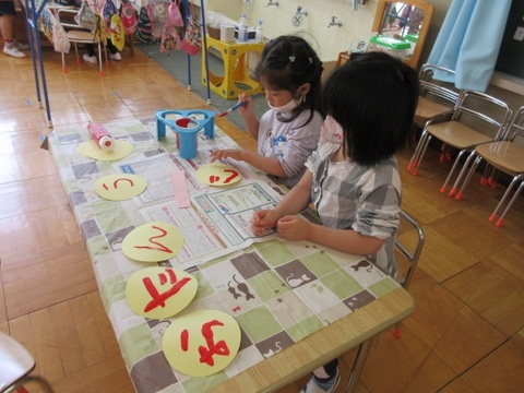 自分たちで文字を書いたり、「切り紙を飾ろうよ」「折り紙でチョウチョウやチューリップも作ろう!」と、今までの経験を基に考えを出し合ったりしました。