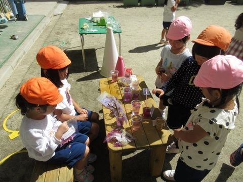 色水で作ったジュース屋さんにはお客さんがたくさん来ていました。