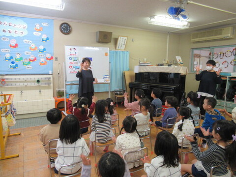 今回が初めての手話体験だったみかん組の子どもたちも、